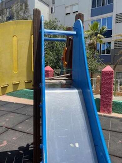 "Hace unos días, llevé a mi hijo al Parque Infantil Justo Santana, en Jinámar, muy feliz por haber encontrado un parque para la edad de mi hijo. Lamentablemente, nos llevamos una gran decepción al ver en qué estado se encontraba. Además del desgaste del suelo (muy separado y levantado por los bordes, por la falta de mantenimiento), y de los materiales, en general, de los distintos mobiliarios, había una tabla (con sus respectivos clavos) que se encontraba peligrosamente levantada en el suelo del inicio del tobogán (justo donde ellos se sientan para poder bajar por él)", precisa.
