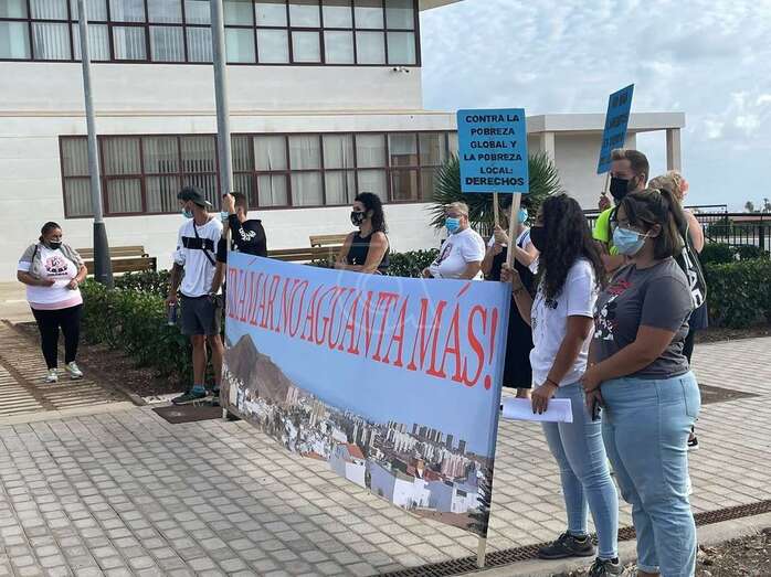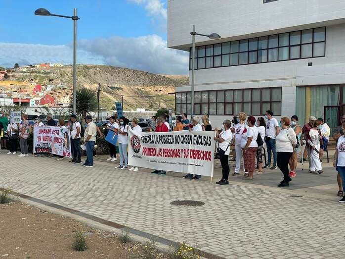 En su protesta que se garanticen los derechos de las personas. También una atención digna y a tiempo. «Queremos que se acabe con las prácticas institucionales de promoción de la caridad y el asistencialismo a favor de proyectos de intervención social para erradicar la pobreza crónica que padecen muchas familias en Jinámar, así como, las causas que la producen, queremos dejar de ser tratados como espectadores de políticas fracasadas, de inversiones que van a engordar los bolsillos ajenos y que entierran o queman millones en proyecto que no necesitamos ni hemos pedido», se quejan los habitantes del barrio con mayor nivel de exclusión social del municipio.