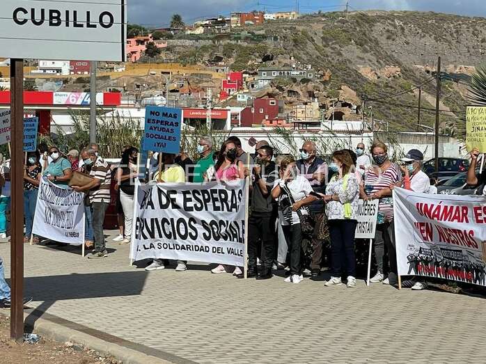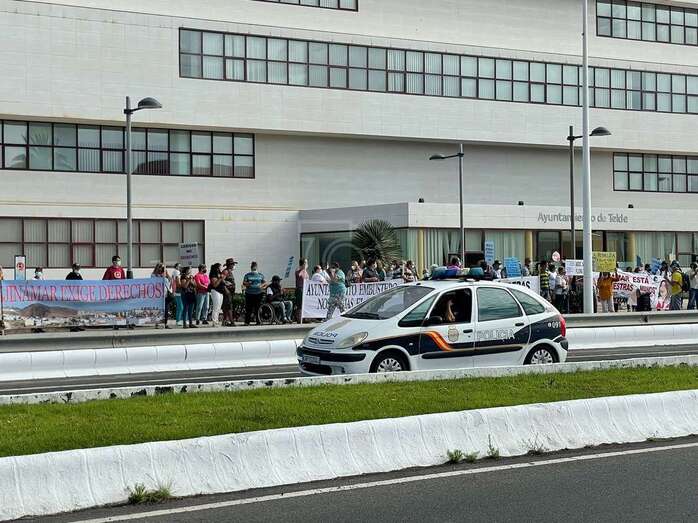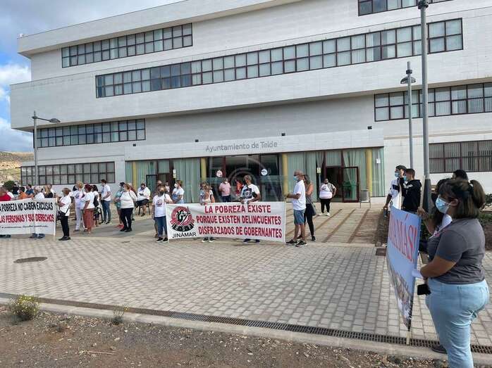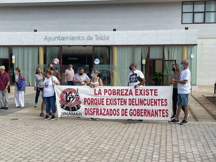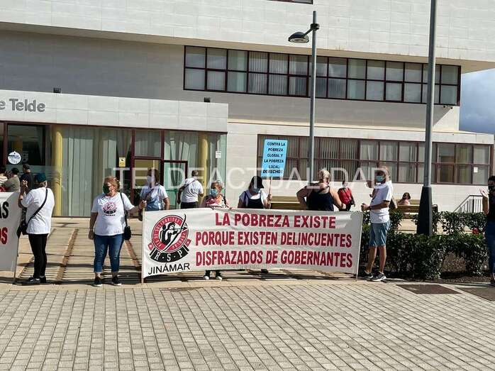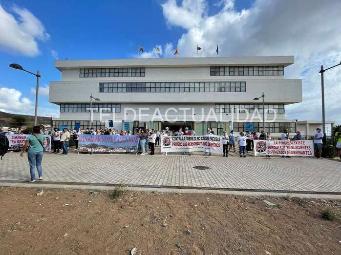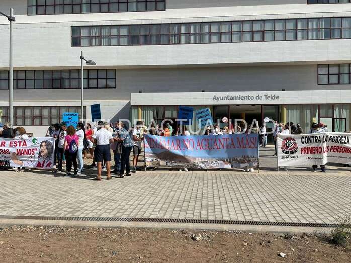 Los asistentes a la protesta, que se inició con medio centenar de personas y que está convocada por una docena de colectivos agrupados bajo el nombre de Movimiento Vecinal de Jinámar, portan varias pancartas con los esloganes Basta de espera de Servicios Sociales, Contra la pobreza no caben excusas o No más lamentos, es tiempo de luchar, entre otros. Y corean consignas contra la alcaldesa de Telde y contra el Gobierno local.