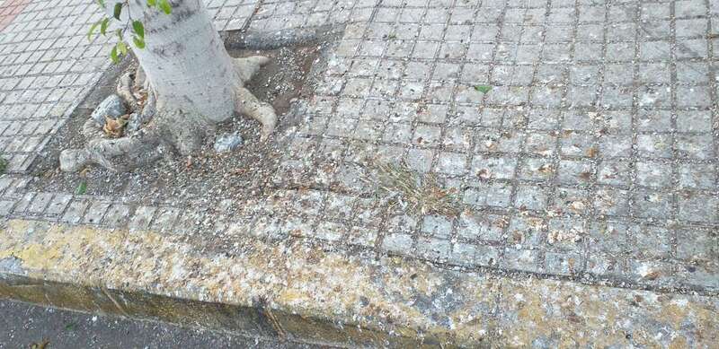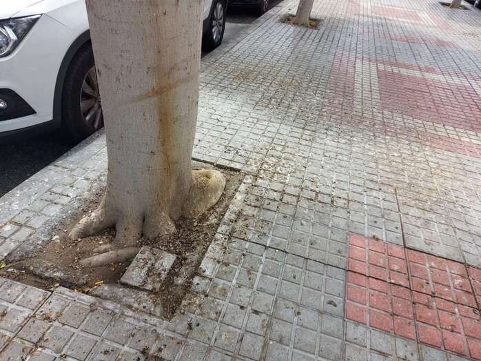 Los vecinos de Salinetas siguen sufriendo los efectos de la presencia de tórtolas en el barrio. Los excrementos de estas aves cubren las fachadas de las viviendas y, sobre todo, el suelo y el mobiliario del bulevar de la calle Américo Vespucio, arteria principal de este importante núcleo costero de la ciudad.