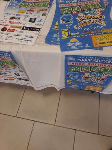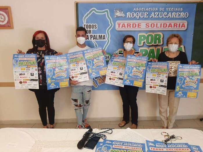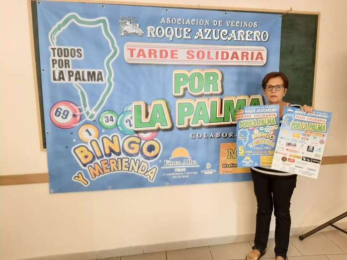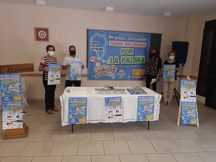 La Asociación de Vecinos Roque Azucarero (Los Llanos de Telde) prepara una tarde solidaria con bingo y merienda para recaudar fondos para los damnificados en la erupción volcánica de La Palma. Será el viernes 5 de noviembre, a partir de las 17.00 horas, en la Finca Alba (Las Medianías).