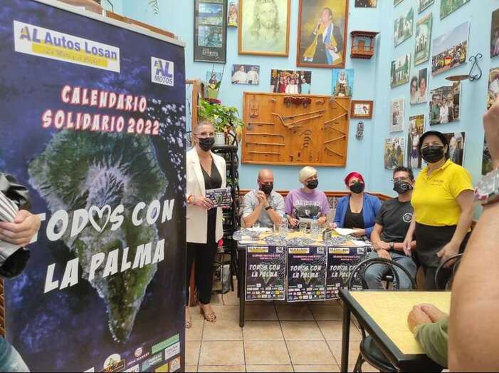 La emblemática Churrería Melián de Telde acogió este viernes la presentación del calendario solidario Tod@s con La Palma promovido por la empresa Autos Losan con el apoyo de otras firmas para recaudar fondos para los afectados por la erupción volcánica en la Isla Bonita. Al acto asistió el concejal de Servicios Sociales, Diego Ojeda.