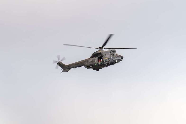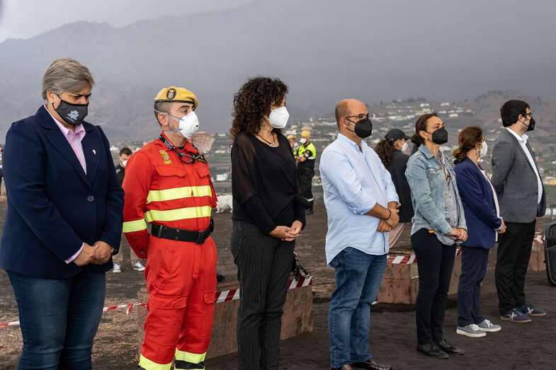 Posteriormente, un helicóptero Superpuma, perteneciente al Ala 46 del Ejército del Aire, situada en la Base Aérea de Gando, en la isla de Gran Canaria, ha sobrevolado el lugar y ha realizado una ofrenda floral por todos los difuntos en un punto de la colada, cercano al Cementerio de Las Manchas, donde han soltado pétalos de flores.
