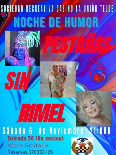 El Casino La Unión de Telde, en el barrio de San Juan, ofrece para la noche de este sábado, un espectáculo de humor y transformismo: Pestañas sin rimel.