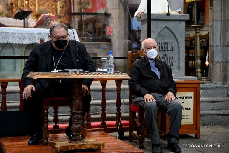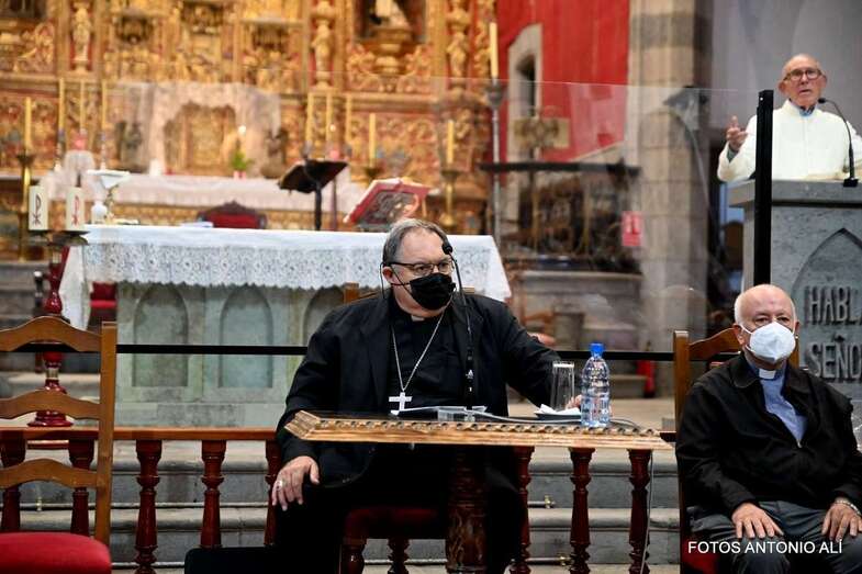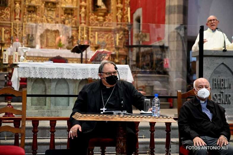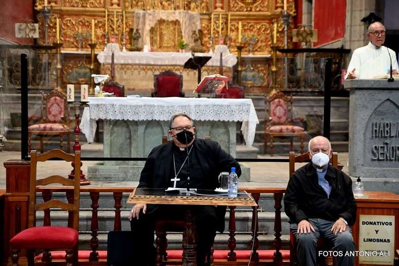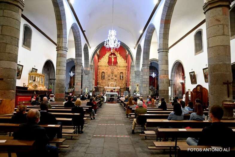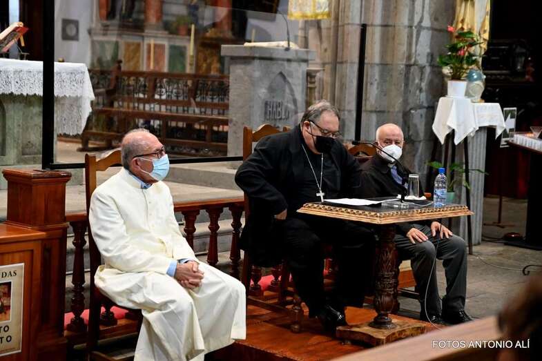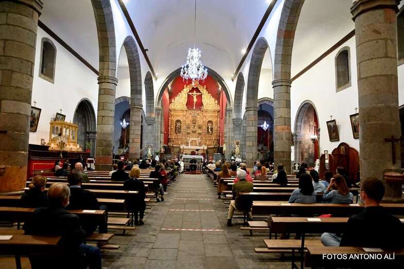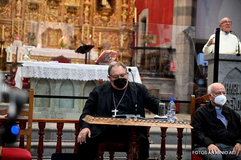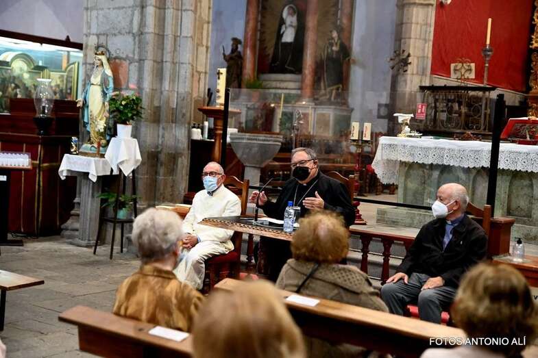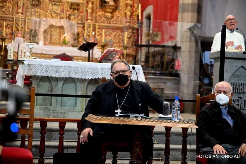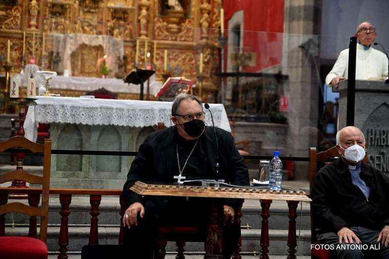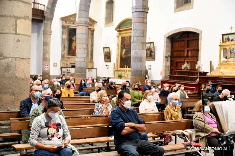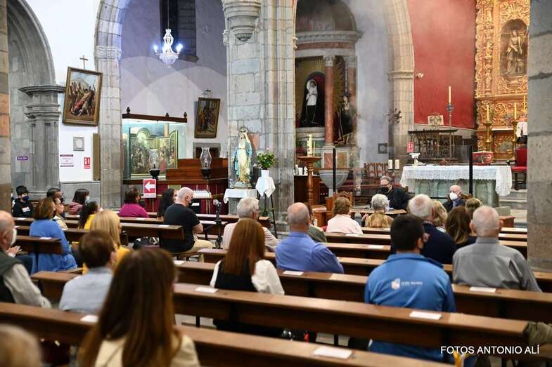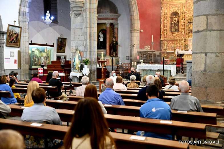 El templo matriz de Telde llenó el aforo permitido por las autoridades sanitarias para escuchar la interesante charla de Mazuelos, que es también presidente de la Subcomisión Episcopal Familia y Defensa de la Vida, sobre el tema El matrimonio cristiano con sus valores: fermento de la renovación de la familia y de la sociedad.