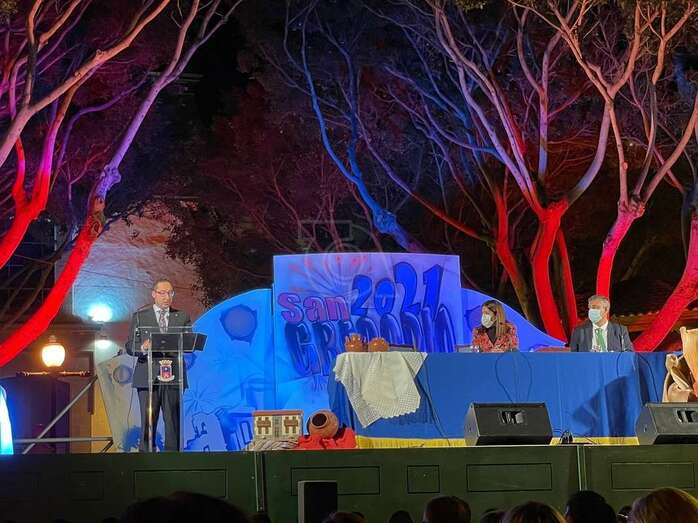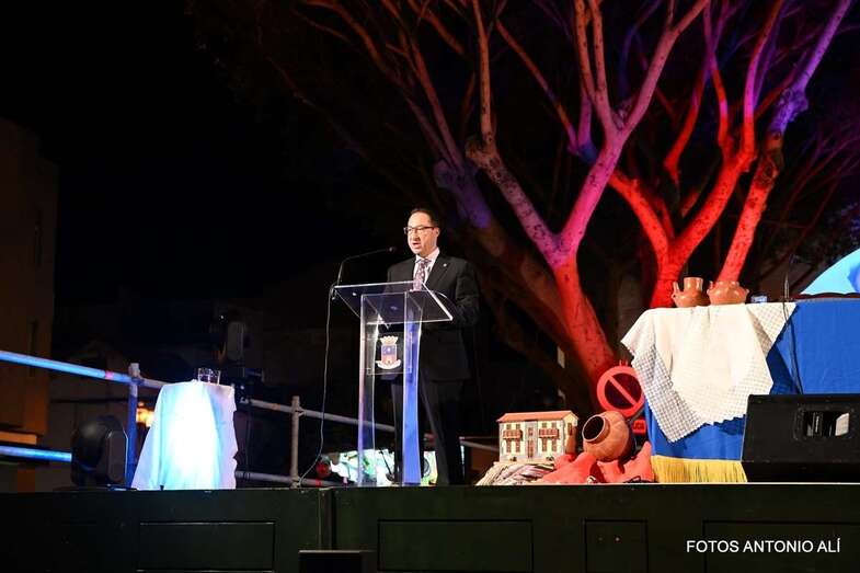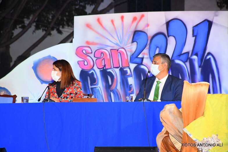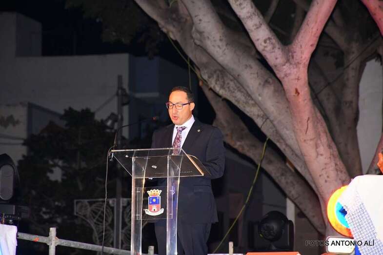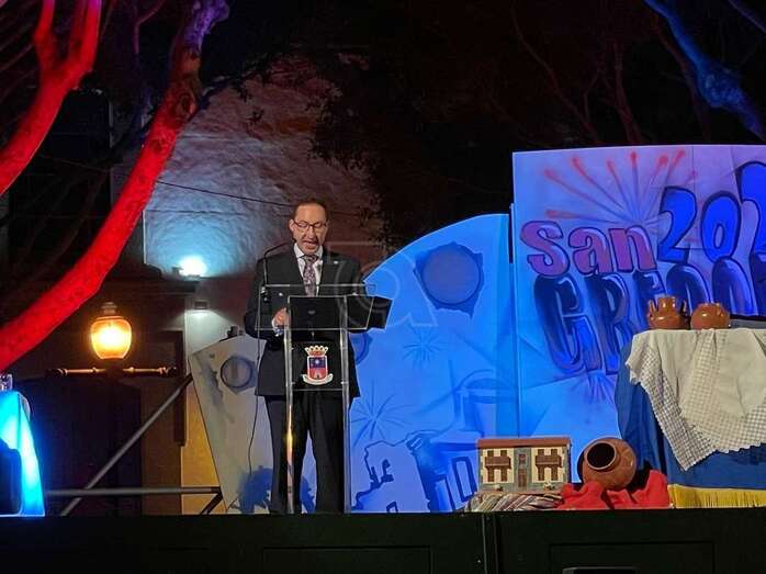 El pregonero, vecino del barrio y cabeza visible de la firma Dámaso Abogados, empezó su intervención hablando de la solidaridad y de la esperanza, y acordándose de los afectados por la erupción volcánica en la isla de La Palma. "Vaya desde aquí nuestro mensaje de ánimo y fuerza para nuestros hermanos palmeros porque también aquí, en San Gregorio y en Telde, todos somos La Palma", manifestó.
