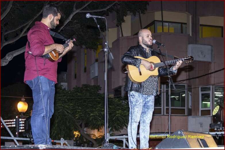 El cantante y compositor teldense Rubén Rodríguez ofreció anoche en la plaza de Los Llanos un concierto en el que estuvo acompañado por el timplista grancanario Abraham Ramos.