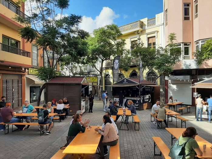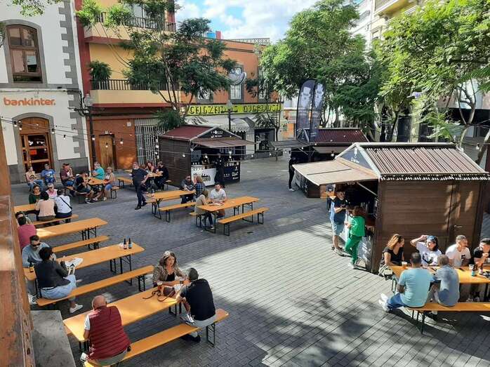 Para este evento se colocaron bancos y mesas en las que se degustaron las bebidas y la oferta gastronómica también de los locales de la zona, si bien este espacio no pudo usarse para bebidas combinadas, sino para cervezas, vino y bebidas sin alcohol.