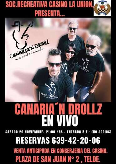 El Casino La Unión de Telde acoge este sábado 20 noviembre el concierto del grupo Canaria´n Drollz a partir de las 21.00 horas.
