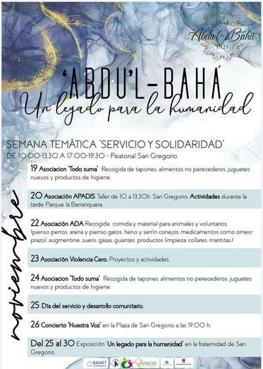 Esta actividad forma parte del programa de actos con el que se conmemora el centenario del fallecimiento de ‘Abdu’l-Bahá
