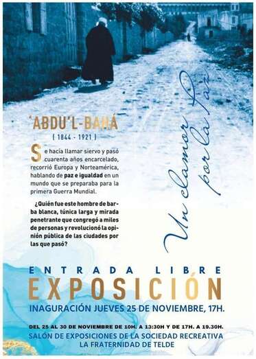 Esta efeméride tendrá su colofón con la inauguración de una exposición sobre la vida y los viajes a Occidente de ‘Abdu’l-Bahá, que se inaugurará este jueves, a las 17.00 horas, en La Fraternidad, y que podrá visitarse hasta el 30, de 10.00 a 13.30 horas y de 17.00 a 19.30 horas.