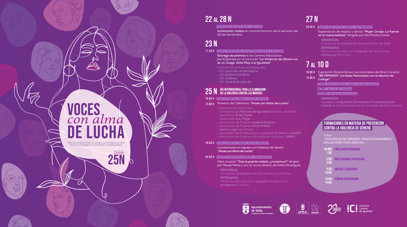 La Concejalía de Políticas de Igualdad, coordinada por el edil Jonay López, avanza en la programación de actos diseñada para la campaña conmemorativa del 25N, Día Internacional para la Eliminación de la Violencia contra las Mujeres, denominada Voces con Alma de Lucha.