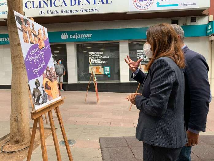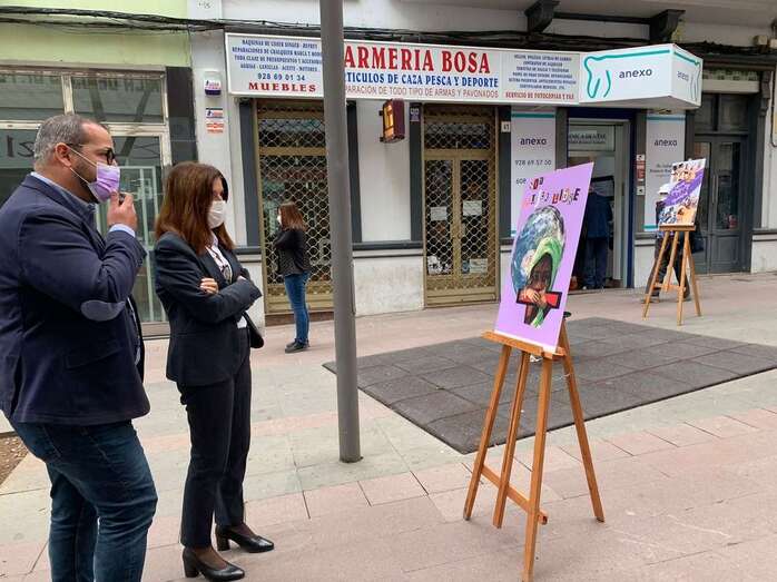 La alcaldesa de Telde, Carmen Hernández, y el concejal de Políticas de Igualdad, Jonay López, visitaron este martes, en la Zona Comercial Abierta de San Gregorio, la exposición BE FEMINIST. Carteles Feministas con la técnica de Collage, en donde pudieron contemplar los 23 carteles en donde la carga reivindicativa es la protagonista.