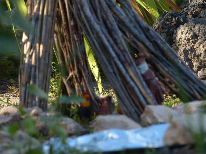 Algunos vecinos participan también en el montaje de esta obra y aportan sus propias creaciones, que ella dispone en el lugar según su mejor entender.