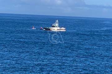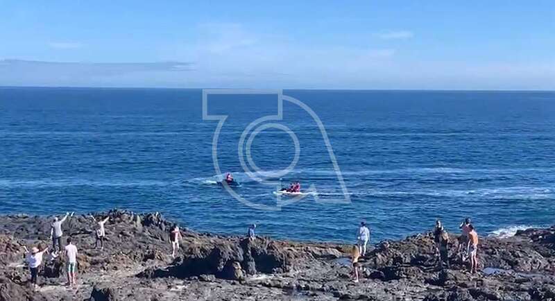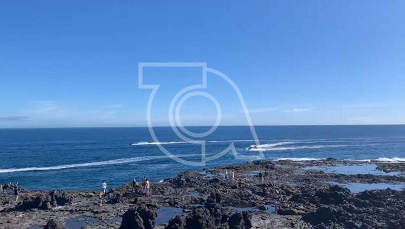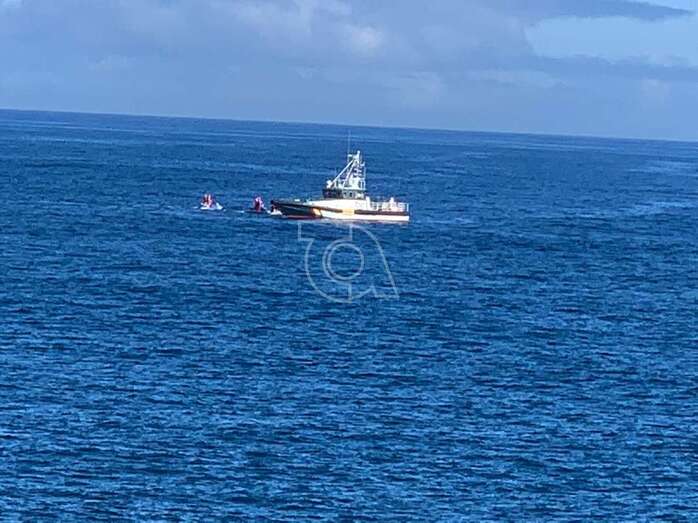Una patrullera de la Guardia Civil llamó la atención esta mañana a un grupo de seis papanoeles que recorrieron en moto acuáticas las playas de Telde saludando a sus usuarios y bañistas desde el agua un día soleado y con la marea en calma.