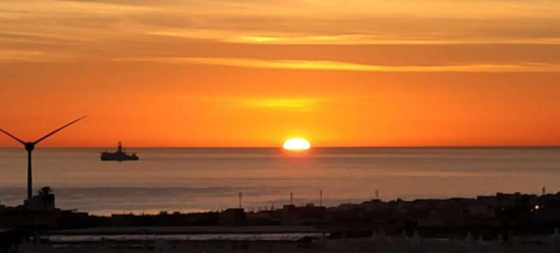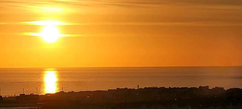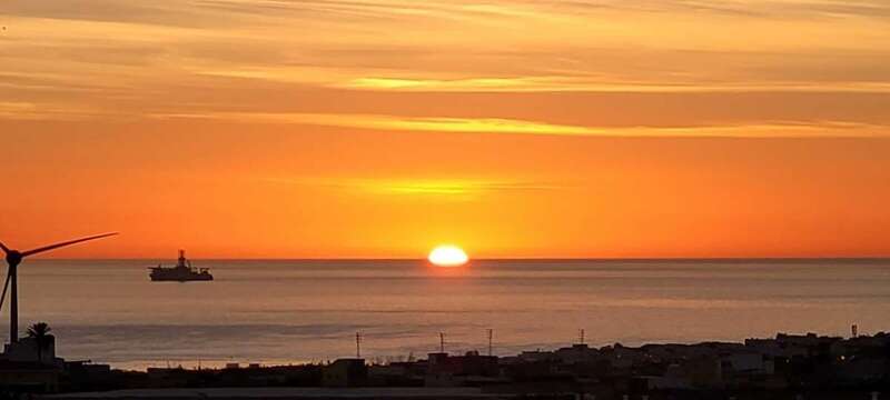 Iniciamos esta misma mañana del primer día de este año nuevo 2022 con una espectacular amanecida de bellísimos matices arrebolados que nos sugieren desde nuestro punto de observación el agradecimiento al Cosmos y a nuestro viaje orbital por el entorno del padre sol que nos alienta, abriga y guía nuestro gran viaje desde este mundo terrenal del que solo contamos como refugio en la inmensa soledad de la galaxia que nos sitúa en el profundo, inconmensurable y misterioso universo. Que el nuevo año sea lo luminoso, esperanzador y derrame en nuestros espíritus la belleza que nuestra estrella más brillante derrama sobre nuestros litorales en este primer día de un año nuevo 2022 que en este primer amanecer se mostró sobre la isla.