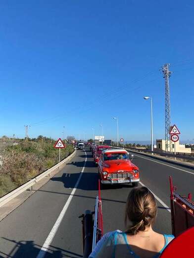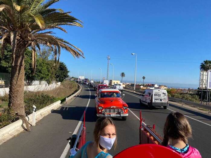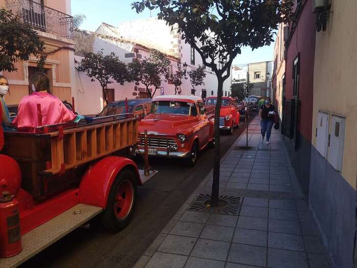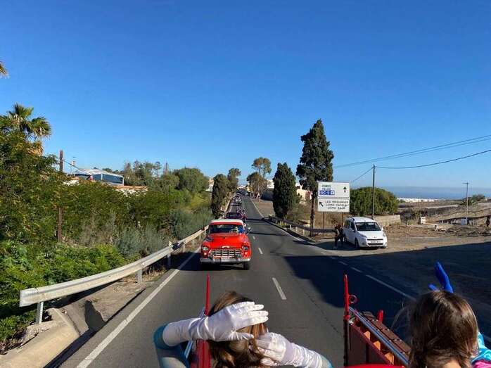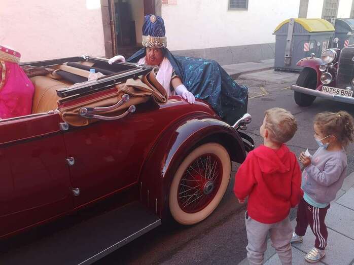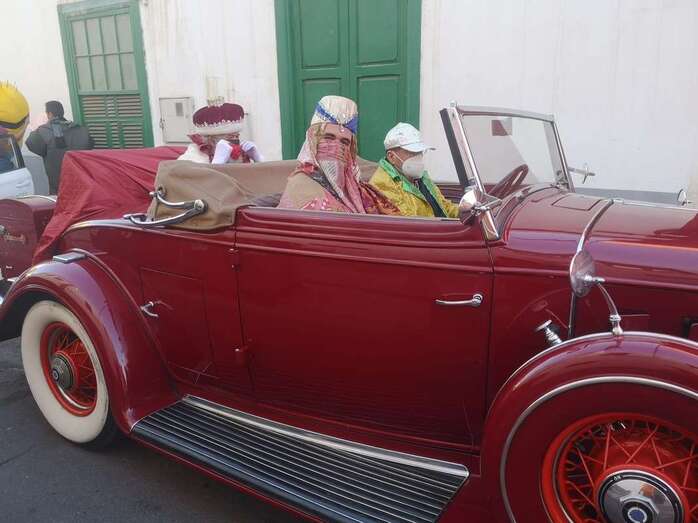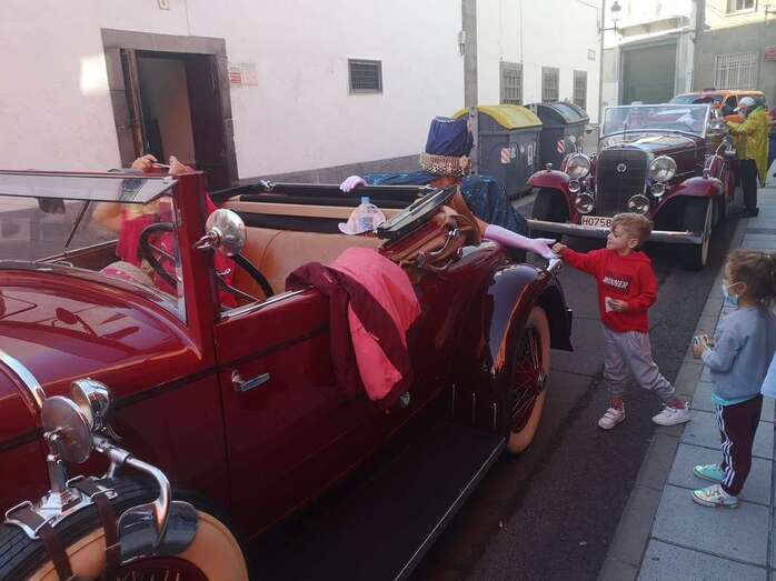 Sus Majestades los Reyes Magos de Oriente iniciarán en unos minutos en Piletillas un amplio recorrido en coches antiguos descapotables de dos días de duración que les llevará, acompañados por sus pajes, por la práctica totalidad de los barrios de Telde para saludar a los niños y a sus familias, que los han esperado con gran ilusión desde sus hogares ya que debido al repunte de los contagios de Covid-19 este año tampoco se celebra la tradicional cabalgata.