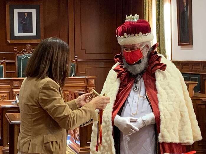 A primera hora de este martes tuvo lugar el tradicional recibimiento oficial a Melchor, Gaspar y Baltasar por parte de la alcaldesa de Telde, Carmen Hernández, quien les hizo entrega de las Llaves de la Ciudad, en un acto que se realizó sin público, pero que ha sido grabada y será compartida a través de las redes sociales el 5 de enero.