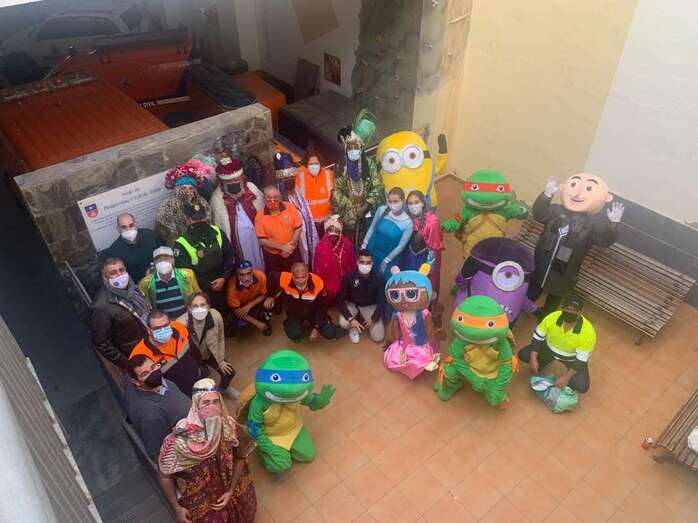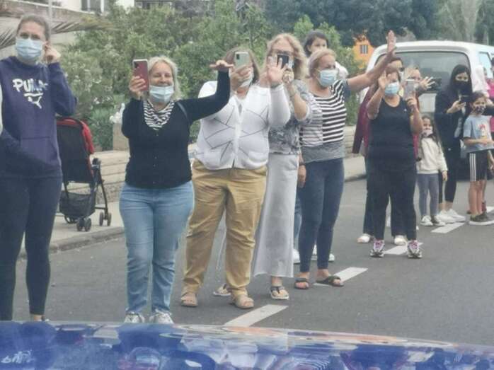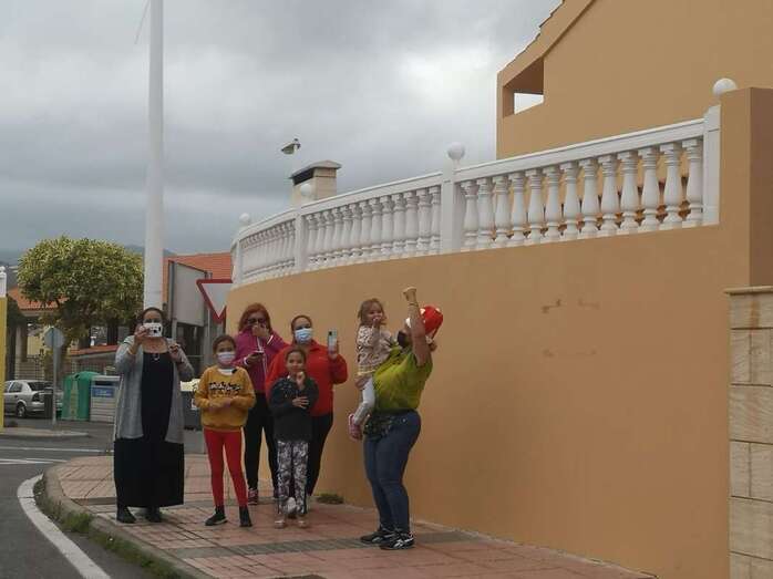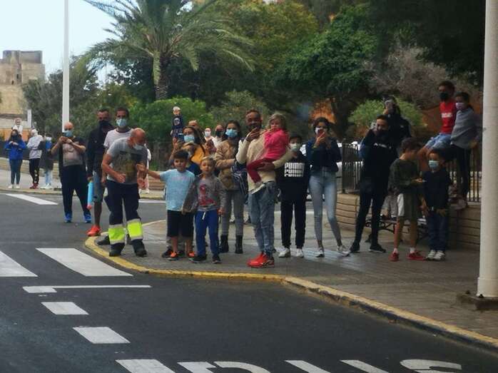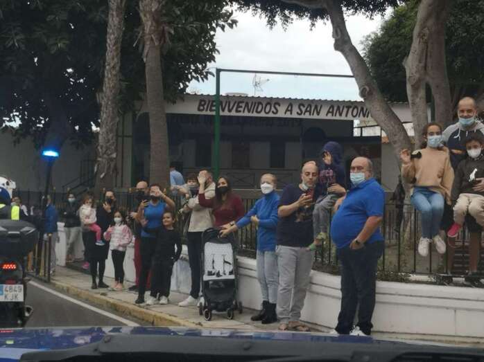 El Rey Baltasar saludando a niños y adultos esta tarde en San Juan/TA.