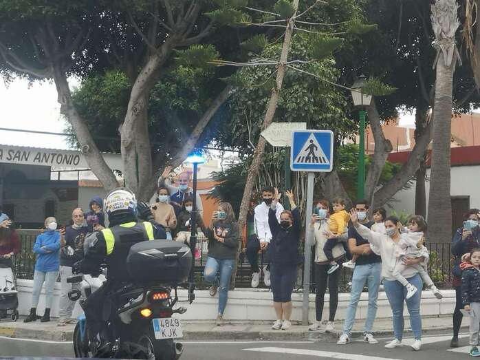 El Rey Baltasar saludando a niños y adultos esta tarde en San Juan/TA. TELDEACTUALIDAD ofrece otra galería de imágenes del recorrido de los Reyes Magos por algunos barrios y el casco urbano de la ciudad de Telde durante este miércoles, 5 de enero.
