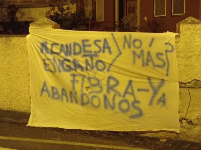 Pancartas colocadas en la plaza de La Higuera Canaria/TA. Pancartas colocadas en la plaza de La Higuera Canaria/TA.