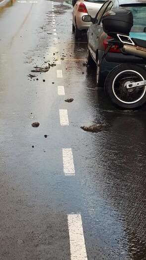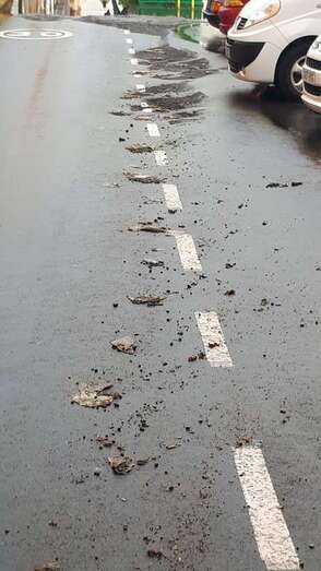 Este miércoles, el rocío matutino ha vuelto a provocar el desbordamiento de aguas fecales por la arqueta de saneamiento situada a la altura del 90 de esta vía formando un río de excrementos.