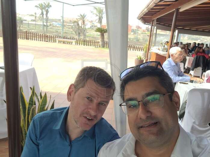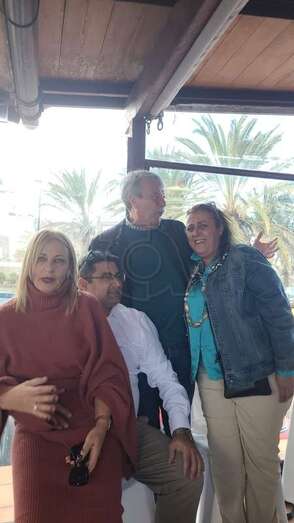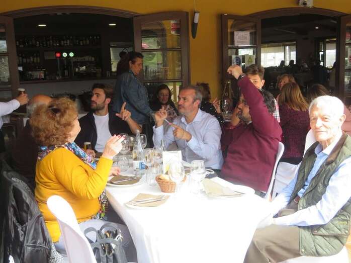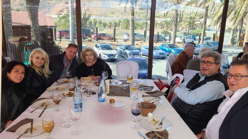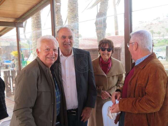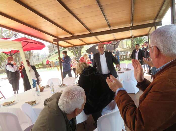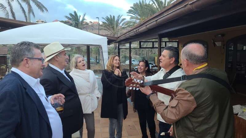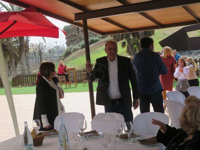 Acompañado de familiares, Benítez llegó al evento preparado con sigilo por sus hijos y esposa Nieves Gracia, que festejaba también su 69 aniversario, y en cuanto enfiló el local donde estaban reunidos más de medio centenar de amigos, recibió un gran aplauso que emocionó al conocido exedil y folclorista, un hombre que sitúo al municipio en lo más alto del embellecimiento urbano de Canarias durante su etapa como cargo electo de la Corporación municipal en la década de los años 90 del pasado siglo siendo alcalde Francisco Santiago, entre los invitados al homenaje.