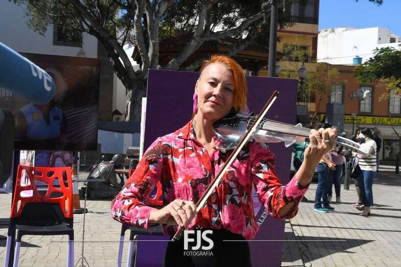 La lectura del manifiesto institucional estuvo a cargo de la periodista Wendy Fuentes y la cantante Thania Gill y la violinista Regina Schinglerova acompañaron el acto con música teñida de reivindicación / TA La lectura del manifiesto institucional estuvo a cargo de la periodista Wendy Fuentes y la cantante Thania Gill y la violinista Regina Schinglerova acompañaron el acto con música teñida de reivindicación / TA
