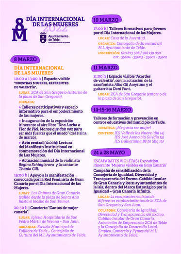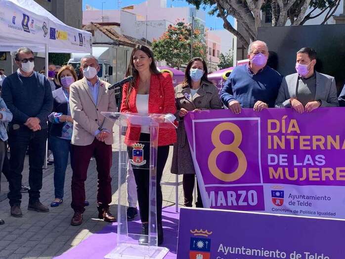 Telde alzó la voz este mediodía en un 8 de marzo más para exigir una igualdad real y efectiva en el acto central de la campaña que la Concejalía de Políticas de Igualdad, dirigida por el edil Jonay López, ha diseñado en el marco de la conmemoración del Día Internacional de las Mujeres, bajo el lema Nuestras mujeres, referentes de valentía.