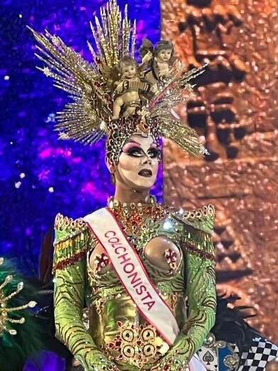 El teldense ha inspirado su espectáculo en "el silencio de la Iglesia y los secretos de los sacerdotes", explica. La fantasía de Drag Kinegua, diseñada por Adrián Castellano, "hace un recorrido por dicha realidad, con un toque de humor y a la misma vez crítica".