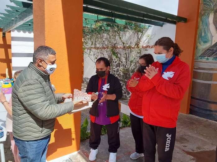 A la jornada se sumaron además los chicos y chicas que trabajan en un huerto ocupacional, que obsequiaron a la comitiva teldense con jabones elaborados por ellos mismos. A continuación, disfrutaron de un desayuno y música y baile, y visitaron una bodega de vino y aceite, donde pudieron conocer el proceso de elaboración de estos productos.