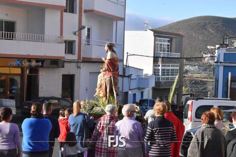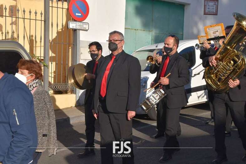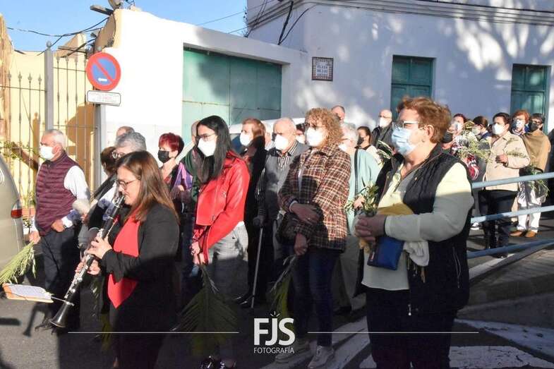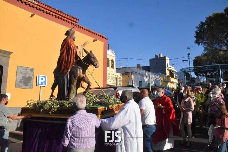 La Parroquia de Nuestra Señora de las Nieves adelantó a este sábado la celebración de la tradicional procesión de La Burrita del Domingo de Ramos con un recorrido religioso por el entorno de la plaza de Lomo Magullo, con el acompañamiento de numeross fieles  y de la Banda Municipal de Música de Telde.