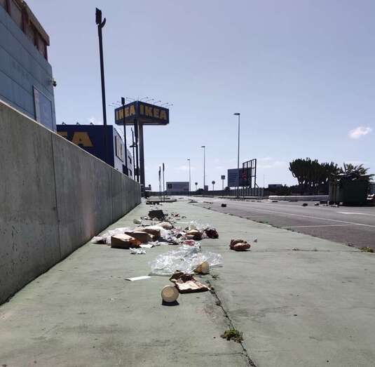Imagen bochornosa la que luce prácticamente cada mañana la trasera del establecimiento de Ikea ubicado en Telde, en el Centro Comercial La Mareta. Los desechos de los envoltorios de los restaurantes de comida rápida se apoderan de los viales y terrenos cercanos, para sonrojo de vecinos y usuarios.
