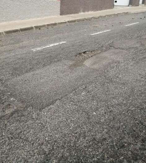 Estado impracticable el que presenta la calle Miño, la vía principal de Caserones altos. Los baches, algunos de unas dimensiones y una profundidad considerable, hacen mella en el asfalto y los vecinos piden una actuación urgente.