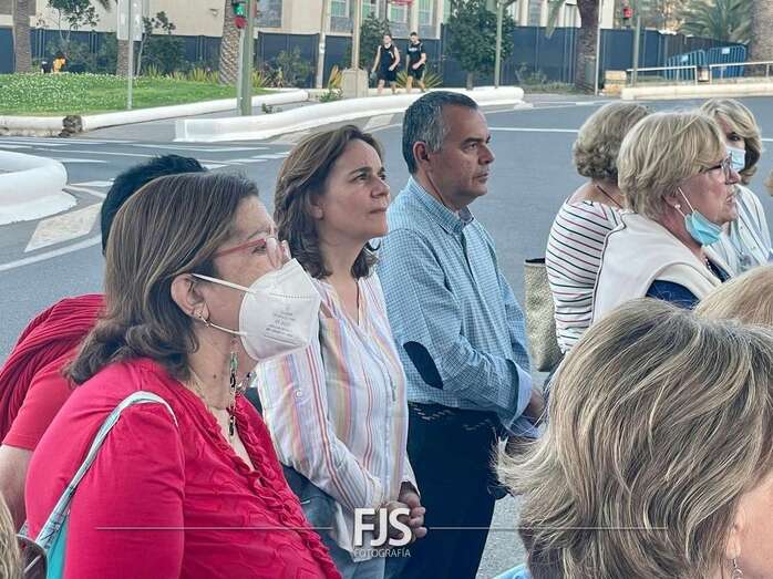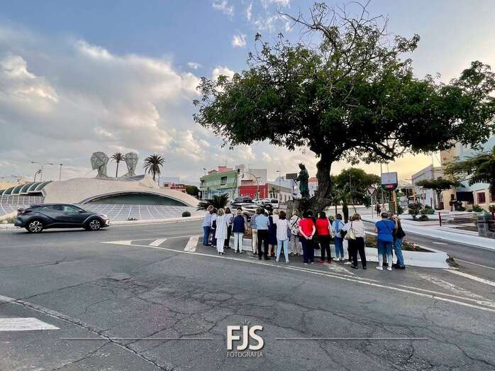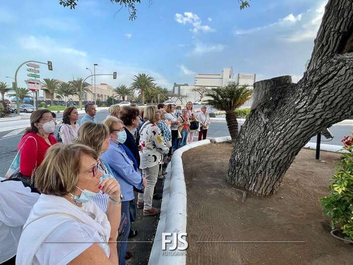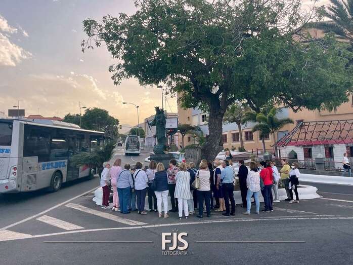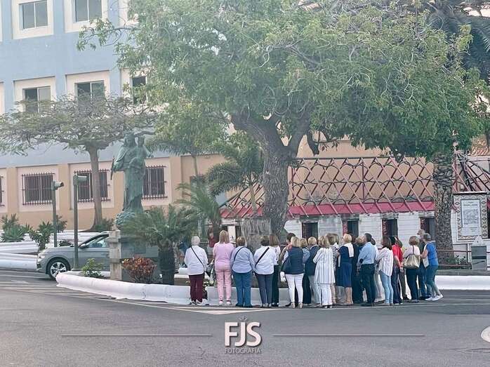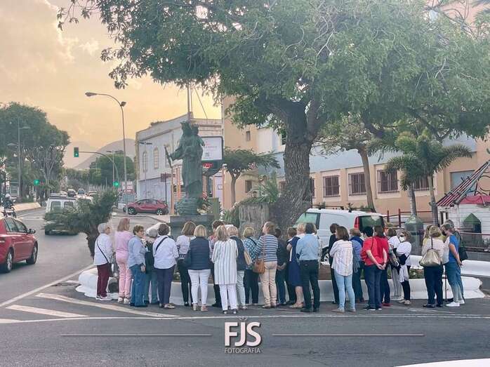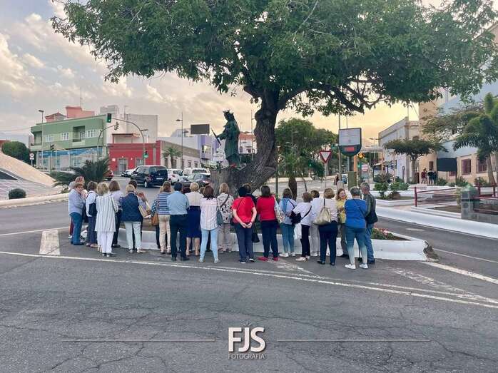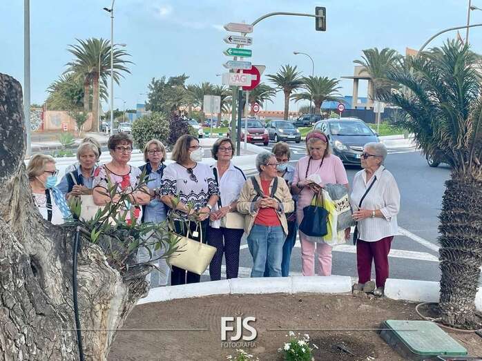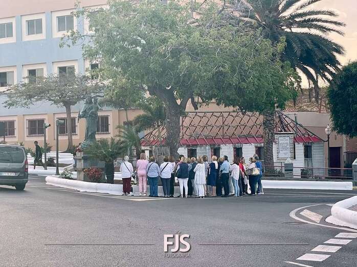 Las antigua alumnas del colegio salesiano María Auxiliadora de Telde rindieron pleitesía este martes por la tarde a la escultura de la Virgen colocada en la entrada a la ciudad sobre una peana próxima a la rotonda de Daora.