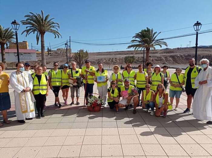 Vecinos de El Calero, adscritos a la Parroquia de Nuestra Señora de Fátima, y miembros de la sociedad San Vicente de Paul de El Calero peregrinaron esta tarde desde este barrio teldense hasta el templo de Santa Rita en Ojos de Garza.