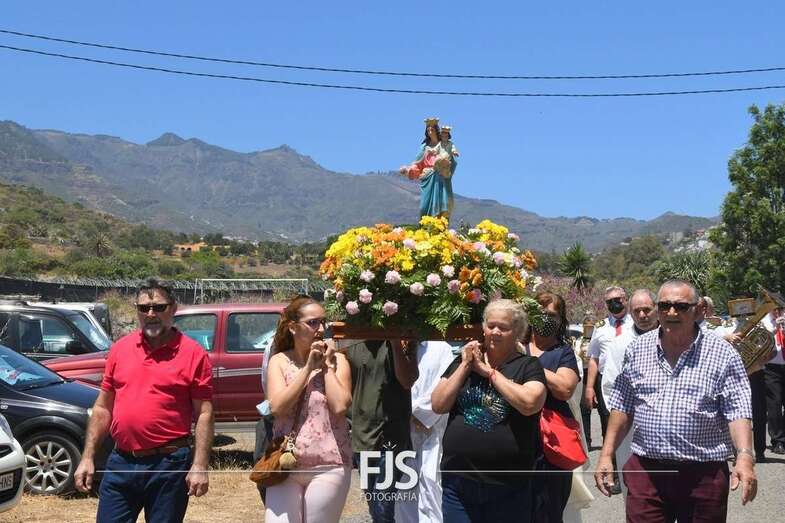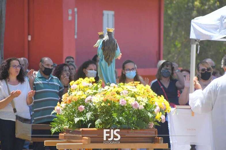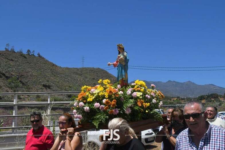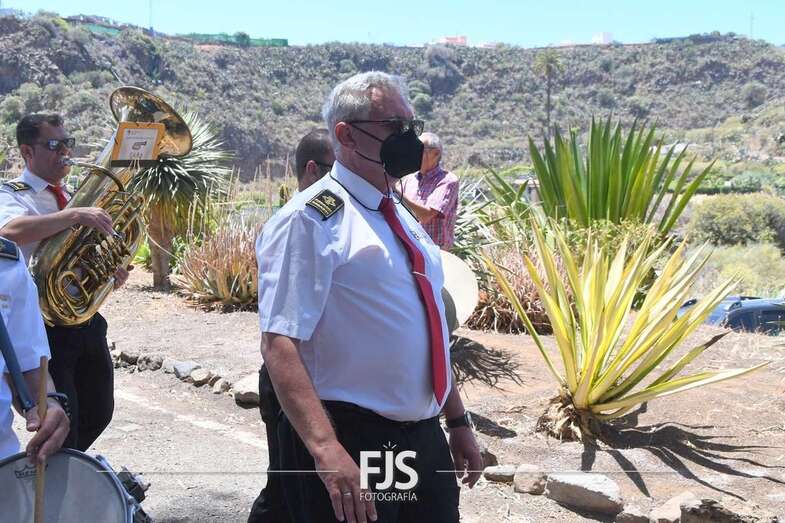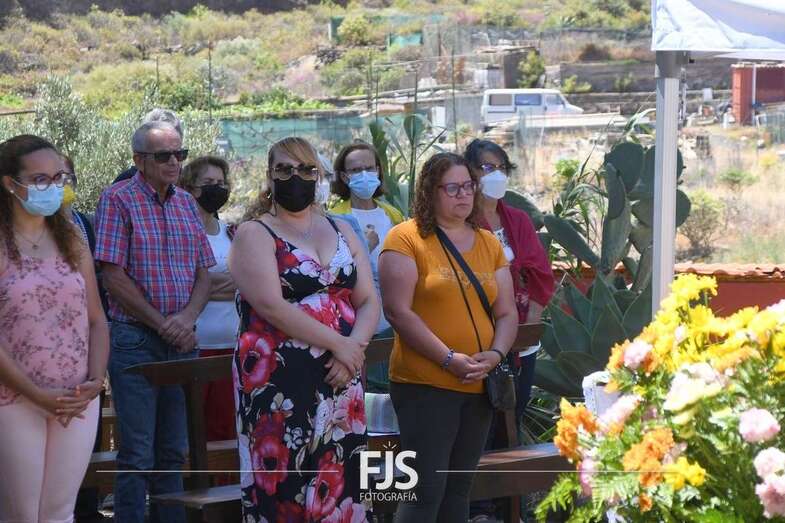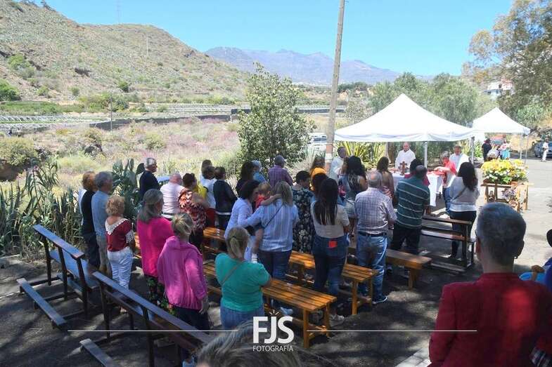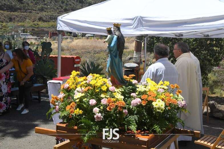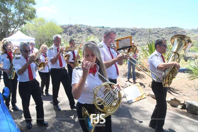 La eucaristía oficiada por el sacerdote Miguel Ramón Hernández, colaborador de la Parroquia de San Antonio de Padua (Mogán), se celebró bajó una carpa en el exterior d del pequeño templo de Tecén y la procesión religiosa de la pequena efigie de la patrona contó con el acompañamiento musical de la Banda Municipal de Telde.