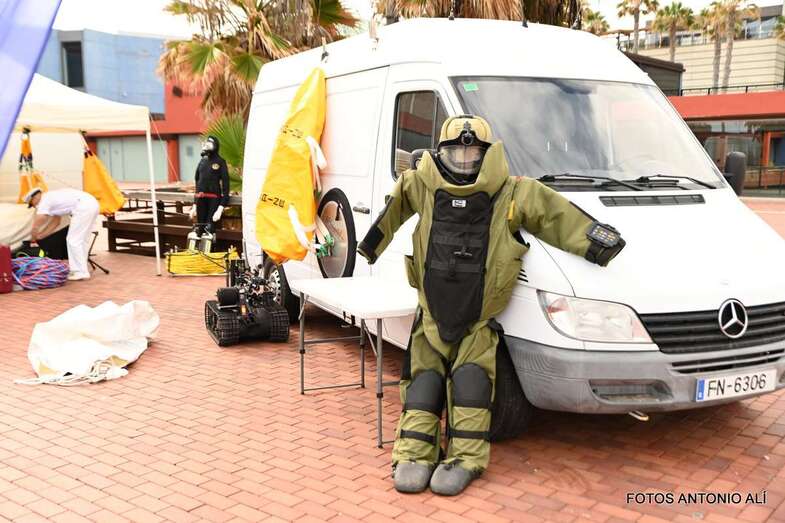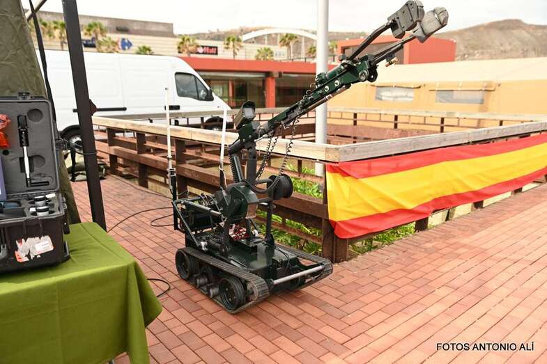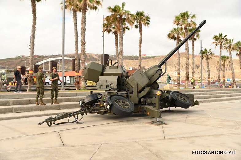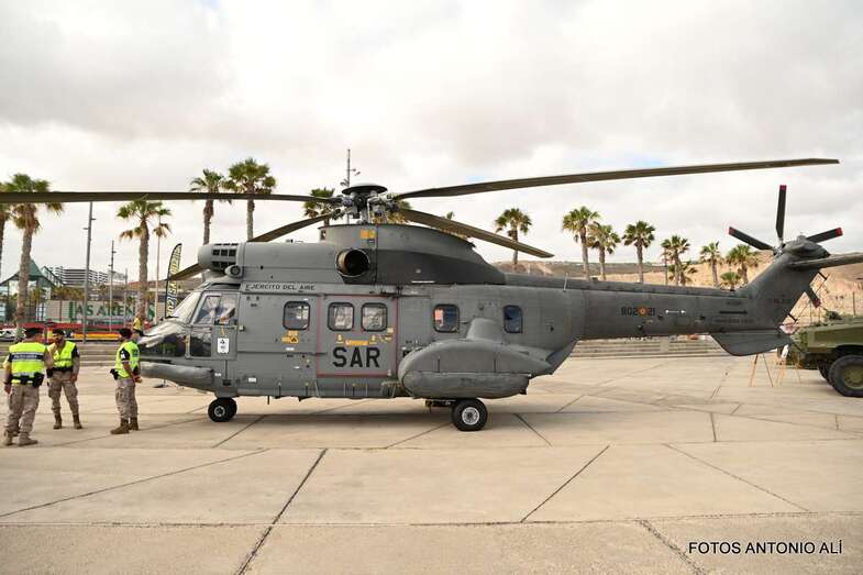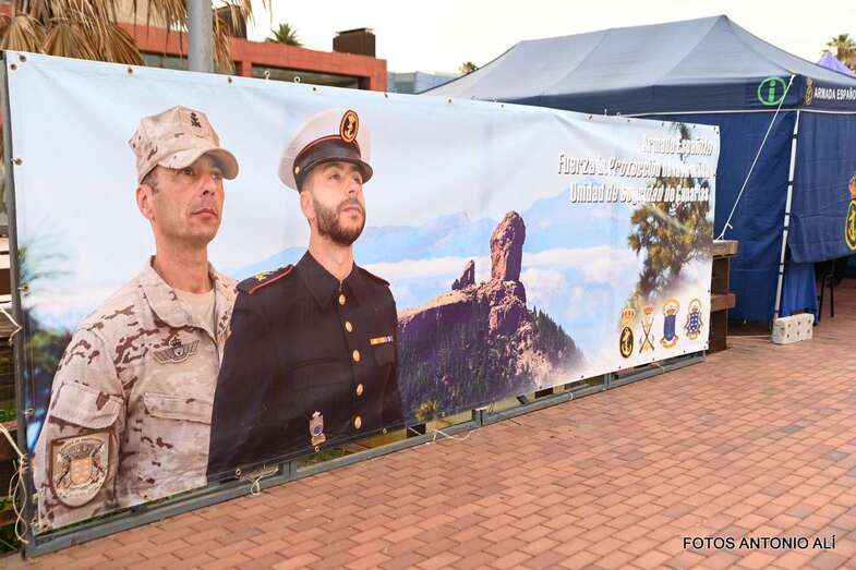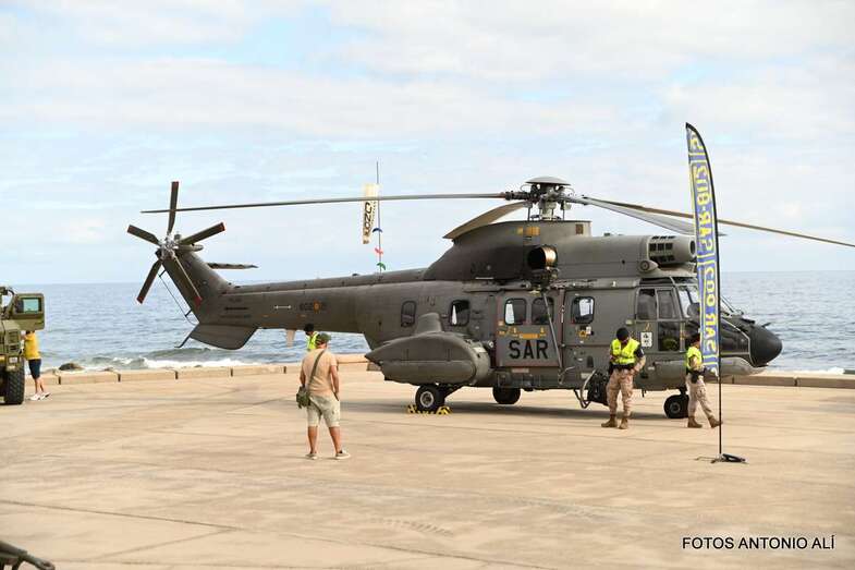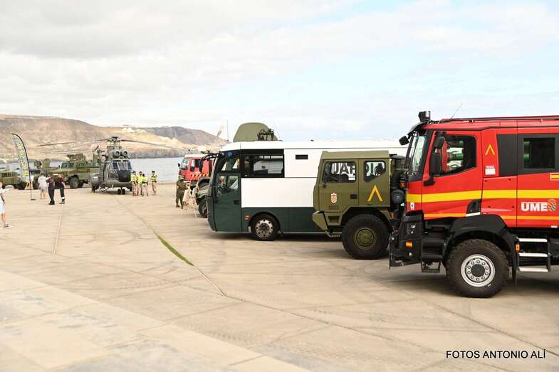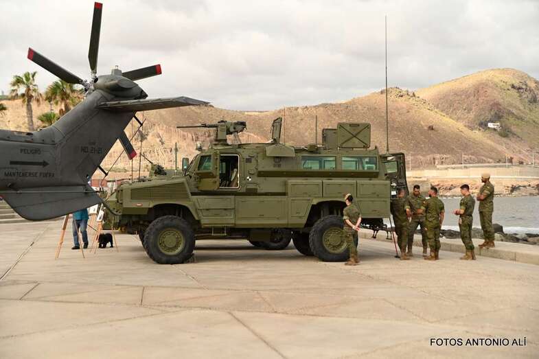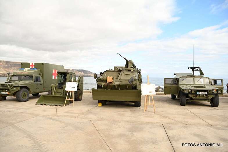 El Parque de la Música, anexo al Auditorio Alfredo Kraus, acogió este sábado una exposición estática de diverso material del Ejército de Tierra, Armada, Ejército del Aire, Guardia Civil y Unidad Militar de Emergencias, incluyendo exposición canina, concierto de música y demostración rescate de un helicóptero del SAR, con motivo de la celebración del día de las Fuerzas Armadas.