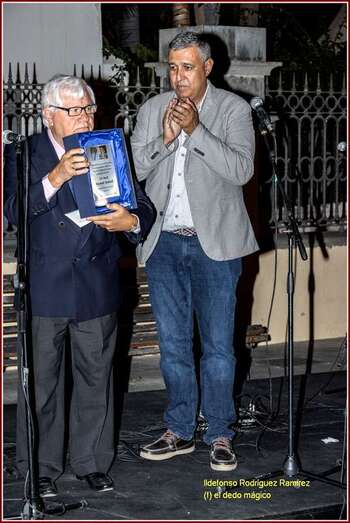 El acto se aprovechó también para tributarle un merecido hy cálido homenaje a David Hatchuell, veterano periodista y locutor radiofónico, al que que quiso sumar la Concejalía de Festejos del Ayuntamiento de Telde con la presencia de su titular, Servando González (NC). Hatchuell, muy emocionado, agradeció el detalle y recordó sus estrechas vinculaciones familiares y profesionales con esta ciudad.