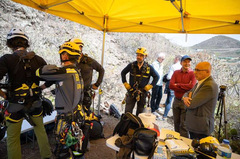 Se trata de la primera vez que se baja a la Sima con una finalidad arqueológica y con el objetivo de realizar un recorrido exhaustivo, delimitar las zonas donde existen restos humanos y hacer los trabajos de sondeo que permitan la recuperación de los cuerpos, según ha explicado a los medios el inspector de Patrimonio Histórico del Cabildo de Gran Canaria, Javier Velasco, que ha descendido hasta el fondo del tubo, donde espera pasar varias horas realizando esas labores.