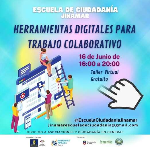Por otro lado, el día 16 de junio tendrá lugar un taller sobre herramientas digitales para trabajo colaborativo. La actividad será de 16.00 a 20.00 horas en formato digital y está dirigida a la ciudadanía en general y a profesionales interesados en esta temática. La asistencia es gratuita y las inscripciones pueden realizarse en la web: https://forms.gle/E5xtaeL9EWF1B4aB6.