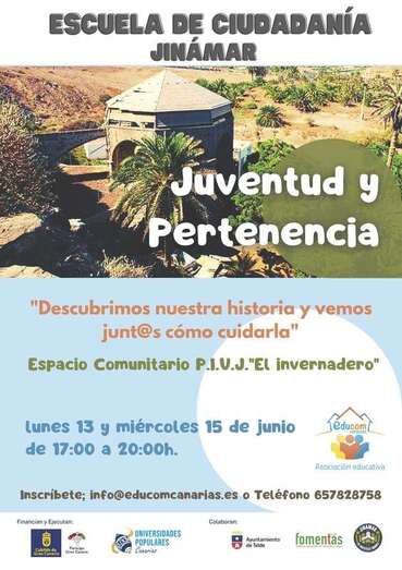 La primera de las actividades, denominada Juventud y Pertenencia, tendrá lugar los días 13 y 15 de junio, de 17.00 a 20.00 horas, en el espacio comunitario El Invernadero del Plan Integral de Jinámar, en el parque de las Mil Palmeras y en la Noria.