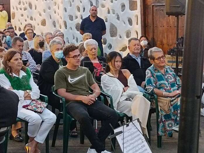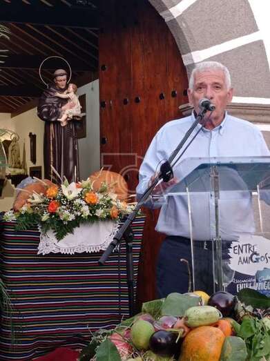 El pregonero fue presentado por su amigo Jesús (Suso) Santana, presidente de la Agrupación Cultural Entre Amigos, quien tomó la palabras tras Edi Gonzalez, presidenta de la comisión vecinal promotora de estos festejos.