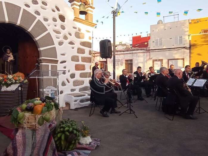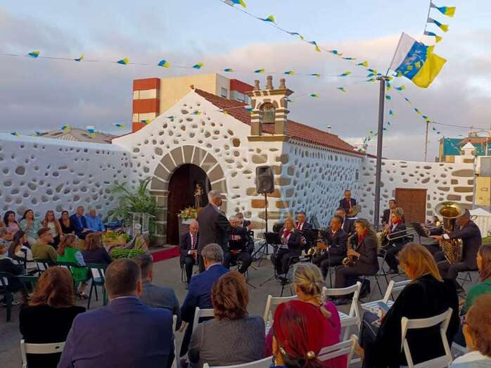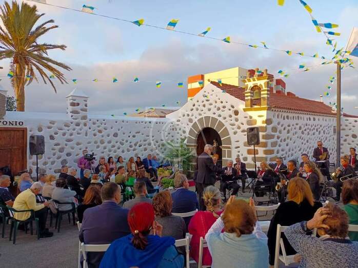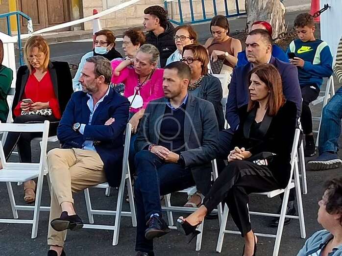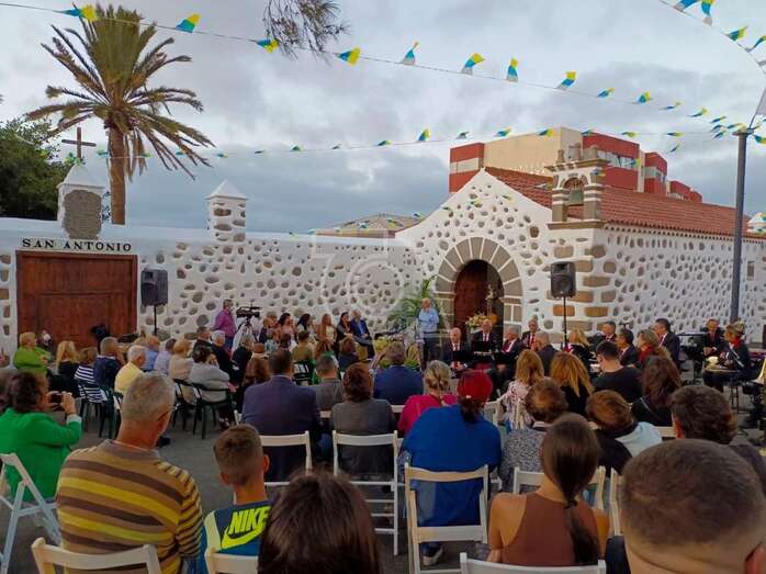 El acto se celebró en la explanada a modo de plaza situada delante de la pequeña y recoleta ermita del barrio y de la escultura del santo patrono, con la asistencia de un nutrido grupo de vecinos y de autoridades encabezadas por la alcaldesa Carmen Hernández Jorge. Estuvo amenizado por la Banda Municipal de Música.