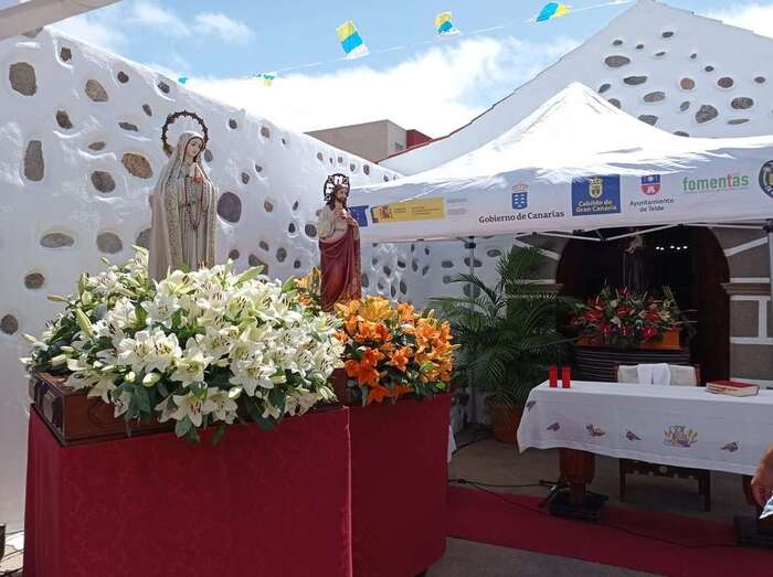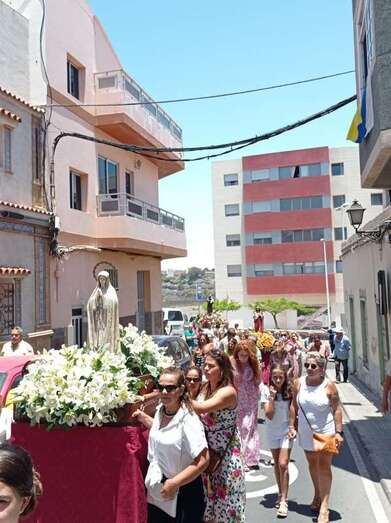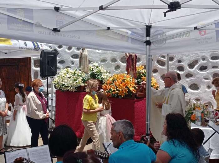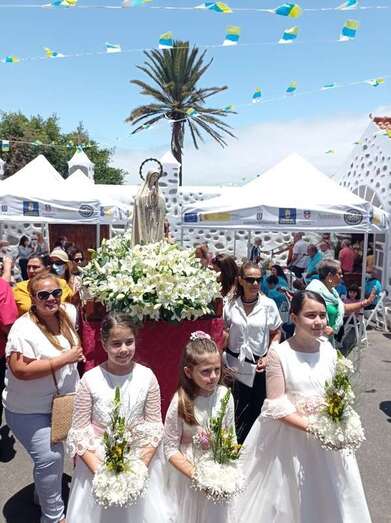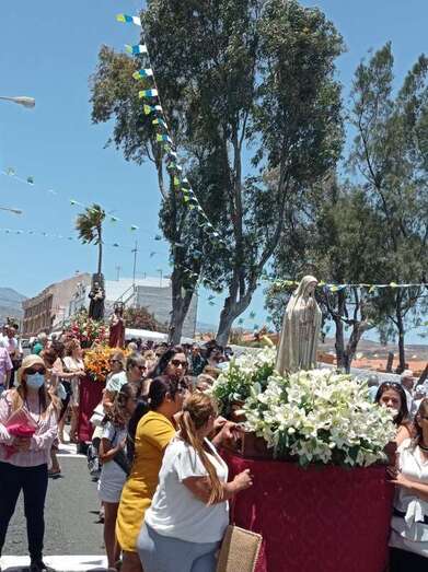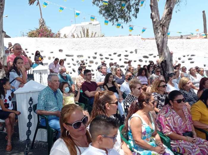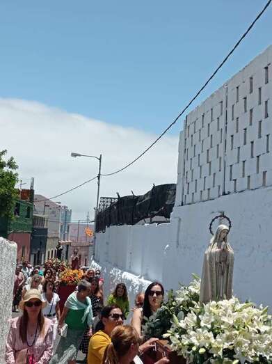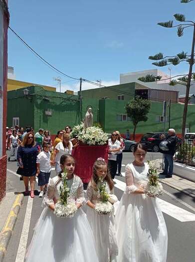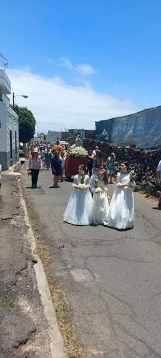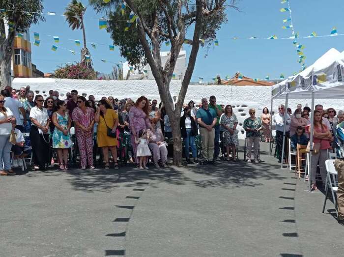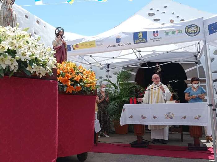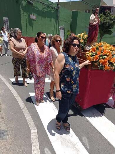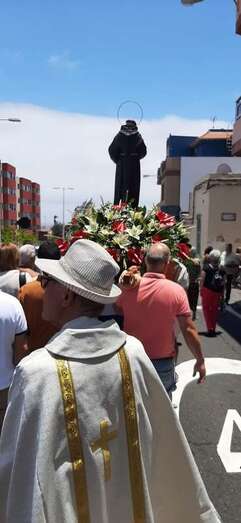A su término, los tronos del patrono y de la Virgen de La Paloma y del Sagrado Corazón, bellamente engalanados para la ocasión, recorrieron las calles de Alcalde de Móstoles, Alto de Los Leones y Marqués del Muni, por la que la comitiva religiosa regresó al templo. Entre los asistentes se encontraban el concejal Diego Ojeda y la asesora Marta Hernández, ambos de Nueva Canaria.