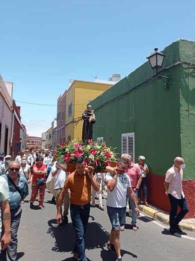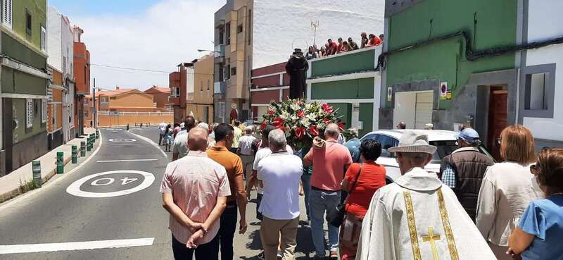El histórico barrio teldense de San Antonio honró este domingo a su patrono con una misa y posterior procesión religiosa por sus calles con el acompañamiento de una banda de música y de decenas de fieles.