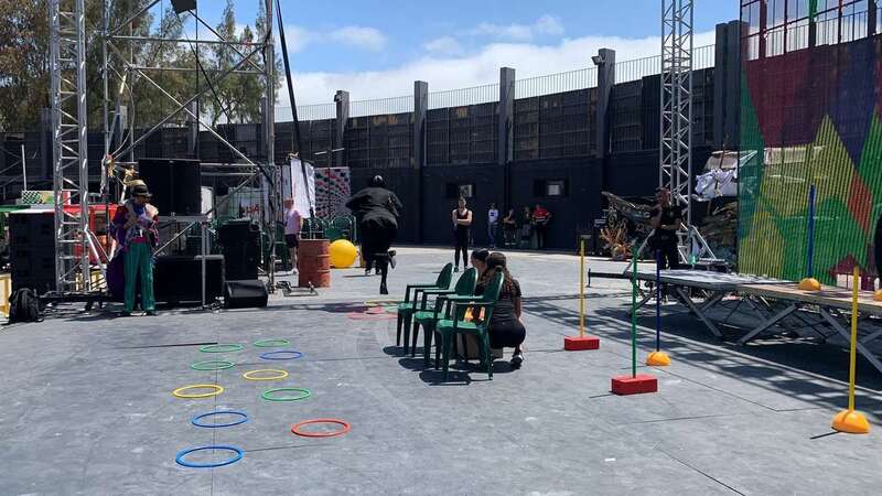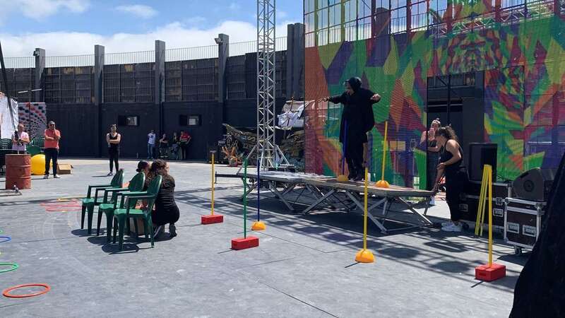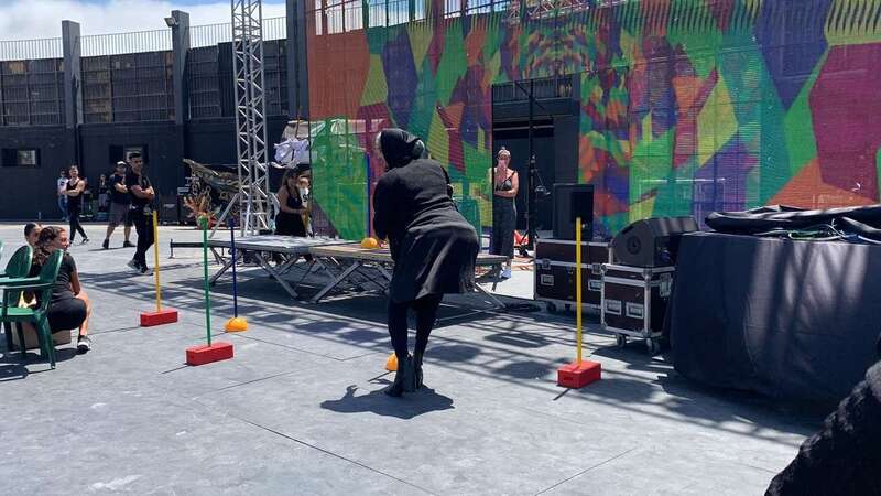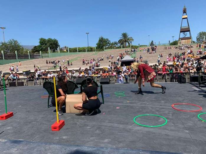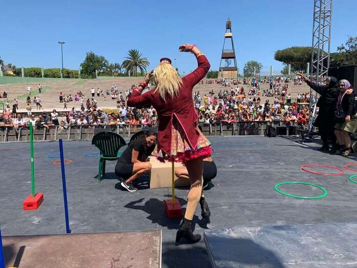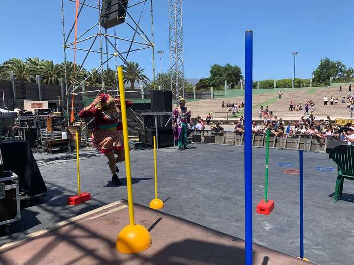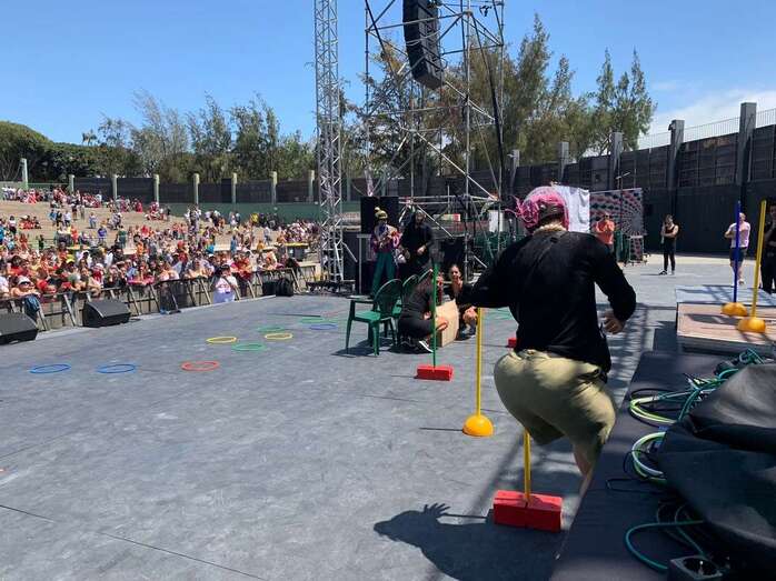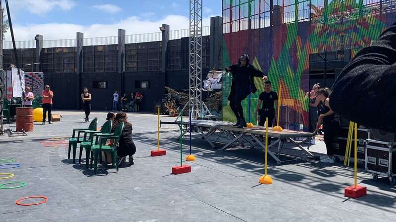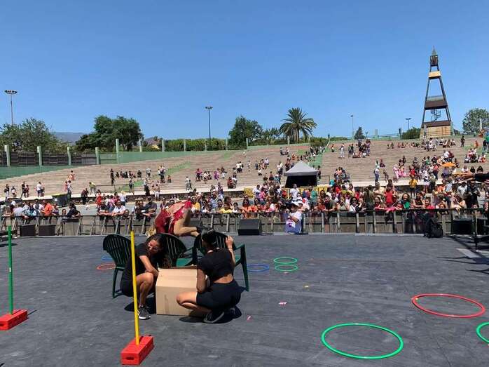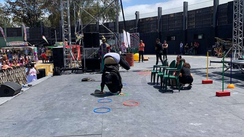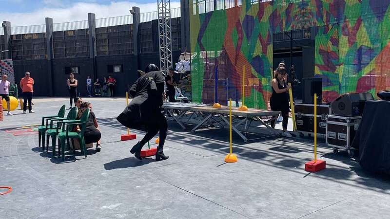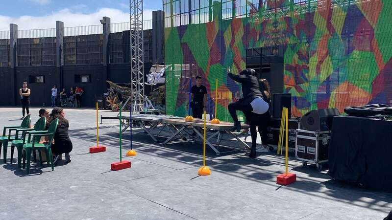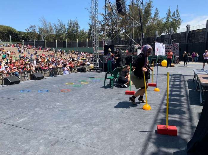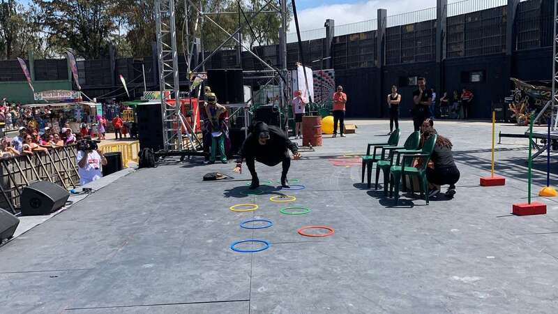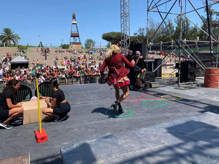 En el escenario de este espacio abierto se montó un improvisado circuito para una divertida prueba de Tacones cuando las manecillas del reloj señalaban las 12 del mediodía.