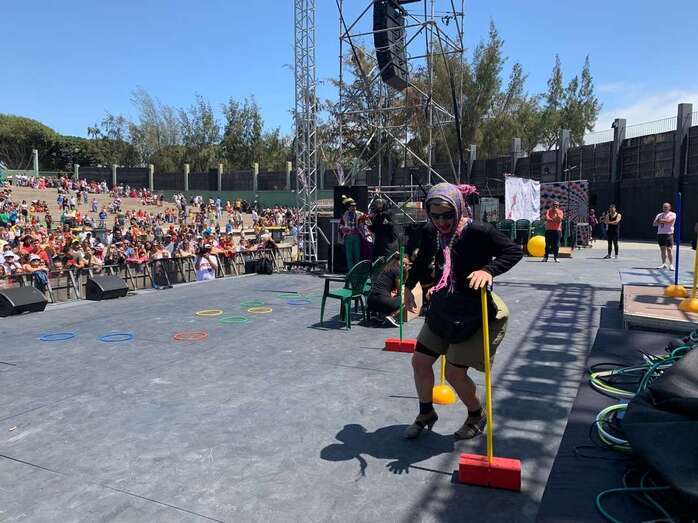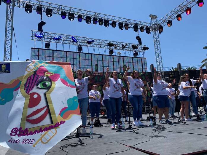 A su término, los grupos del Carnaval de Telde, entre ellos las murgas teldenses Los Nietos de Sary Mánchez y Las Golisniosas, animaron con sus interpretaciones al público de todas las edades que se dio cita en el recinto verde de San Juan.
