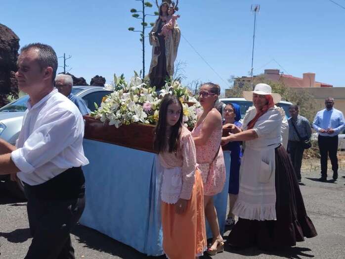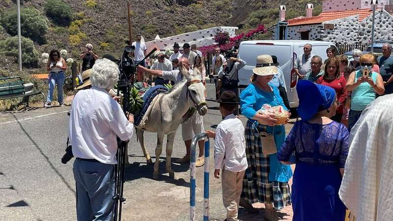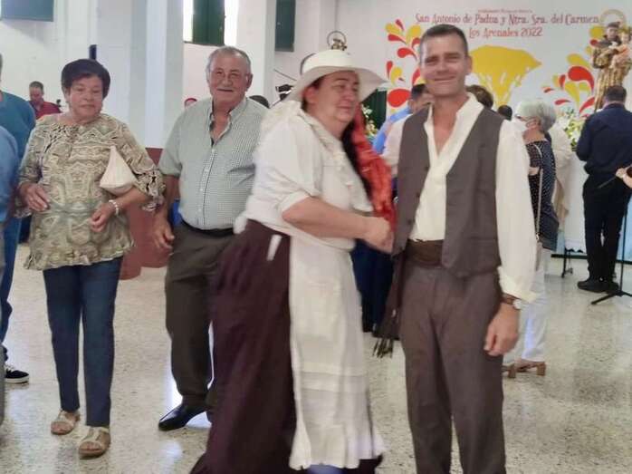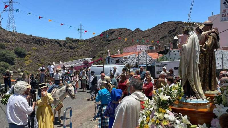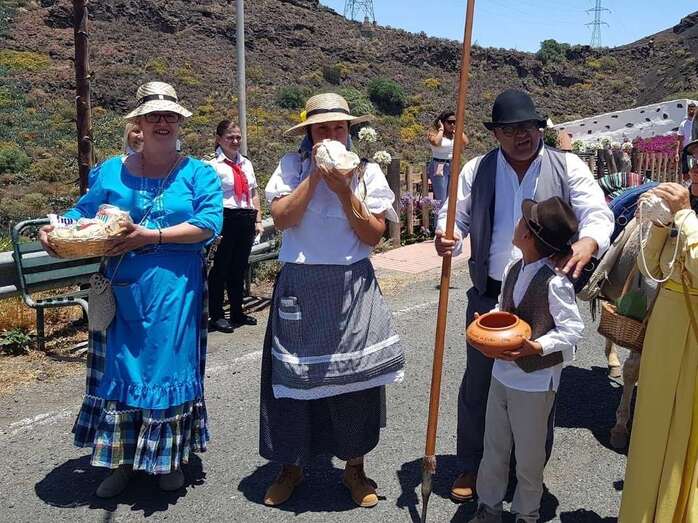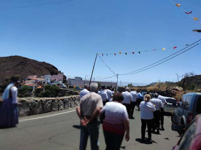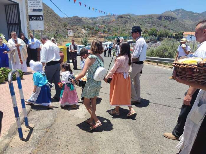 Sobre las 13.30 horas los vecinos de Los Arenales y Lomo Magullo realizaron una ofrenda de alimentos no perecederos o productos de aseo, en la que acudieron vestimenta típica canaria.