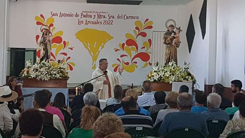 Los Arenales ofrendó este domingo a sus patronos San Antonio de Padua y la Virgen del Carmen una misa y procesión de sus veneradas imágenes por las calles del barrio.